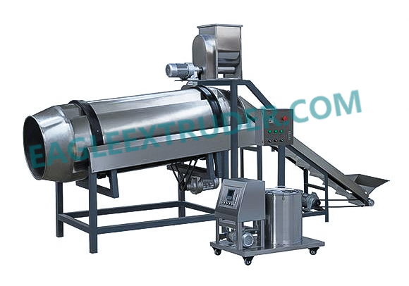 該設備適用范圍廣泛,可用于各類膨化食品和油炸食品的調味,還可以對食品噴油和噴糖。