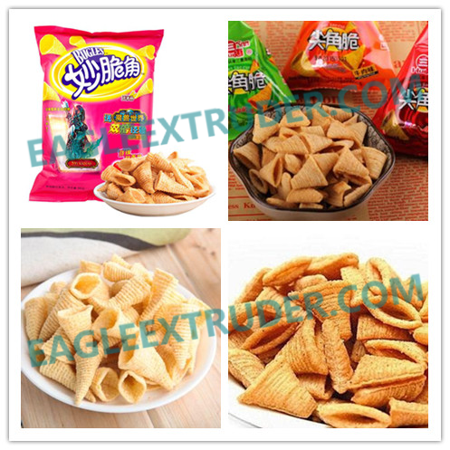 拌料機--輸送機—膨化--成型切斷機--輸送機--油炸鍋--提升機--調味機